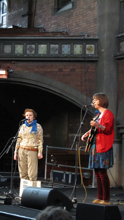 Their onstage demeanour, in fact, reveals what they’re really about as artists as well as performers. As they gently josh or beam at each other – or bend double over a shared joke – their songs celebrate the spectrum of sympathy and friendship in all of its impossibility, unlikeliness, awkward junctures and rebounding. In Quite Something (an indie jig underpinned and smeared about with Grace’s wayward accordion), they chew this over, singing “My lover, my love in a hundred different ways. / Still, you’re right – we could never quite both be the same.” Another song deals with the fluttering nerves of a faltering first date: cutting rapidly between the viewpoints of boy and girl, it puts them and their choices into a perspective of unrolling time. “She is lying on the grass, with her arm across her waist, / she is trying to be brave but I know what she won’t say… I don’t want to look back and think ‘why didn’t I say that?’ / I don’t want to look back and think ‘I should have shown him that – I should have shown him more.’”