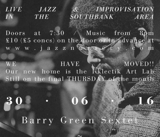 Barry Green Sextet + OTree Trio IKLECTIK, Old Paradise Yard, 20 Carlisle Lane, Waterloo, London, SE1 7LG, England