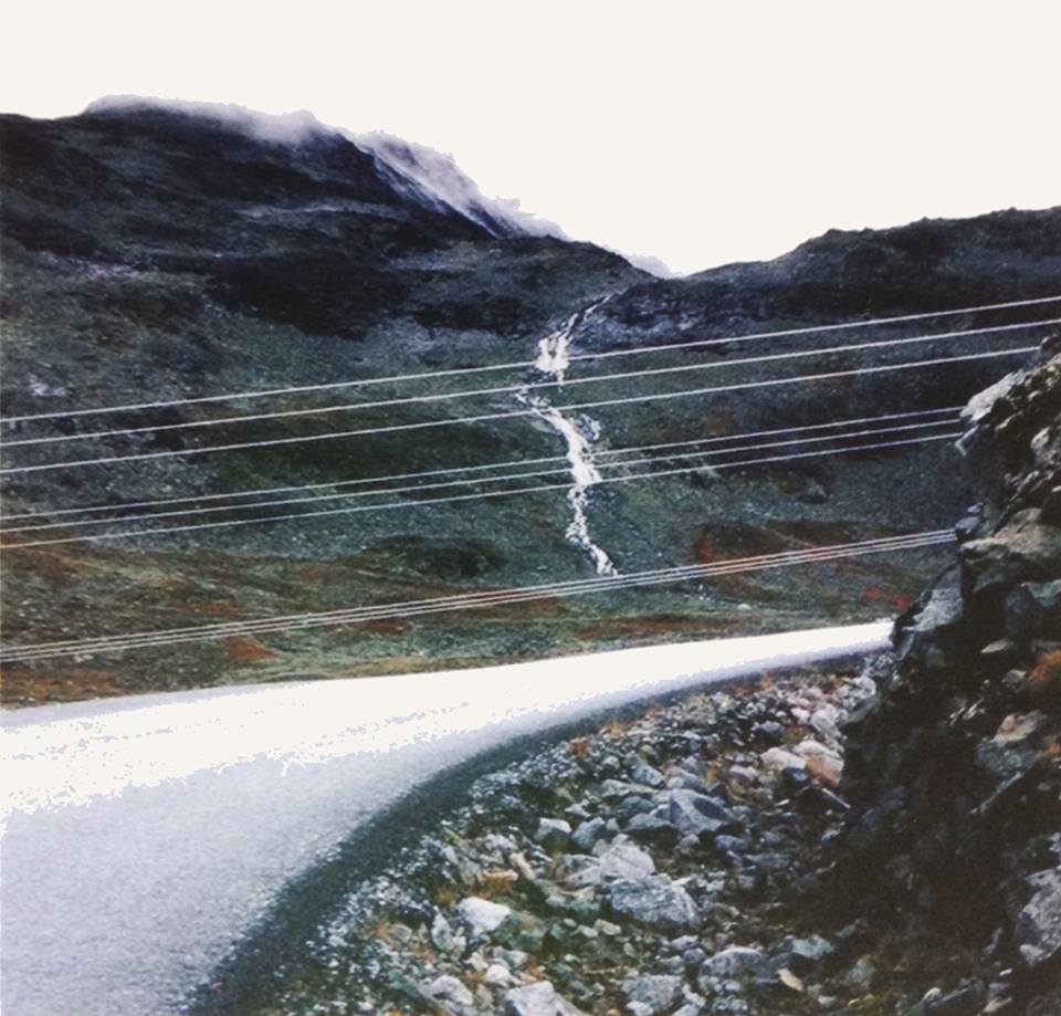 The key is the video element: a dusk-blue recounting of a beachside romance carried out amongst the sand dunes and amusement arcades, which suddenly slips into a nightmare of loss and haunting down at the waterline. Saturated colours give way to video glitches as if beset by repeated blows: a lover’s features become a screen for static and violent effacement; a man writhes in oppressive darkness as if drowning and trying vainly to beat his way free.