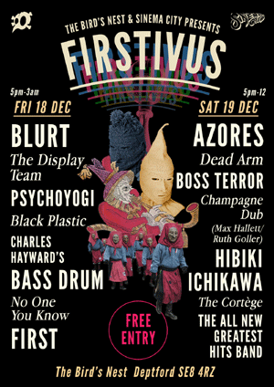 Firstivus (The Bird’s Nest, 32 Church Street, Deptford, London, SE8 4RZ, England, Friday 18th December to Sunday 20th December 2015, 5.00pm onwards) – free – information & tickets