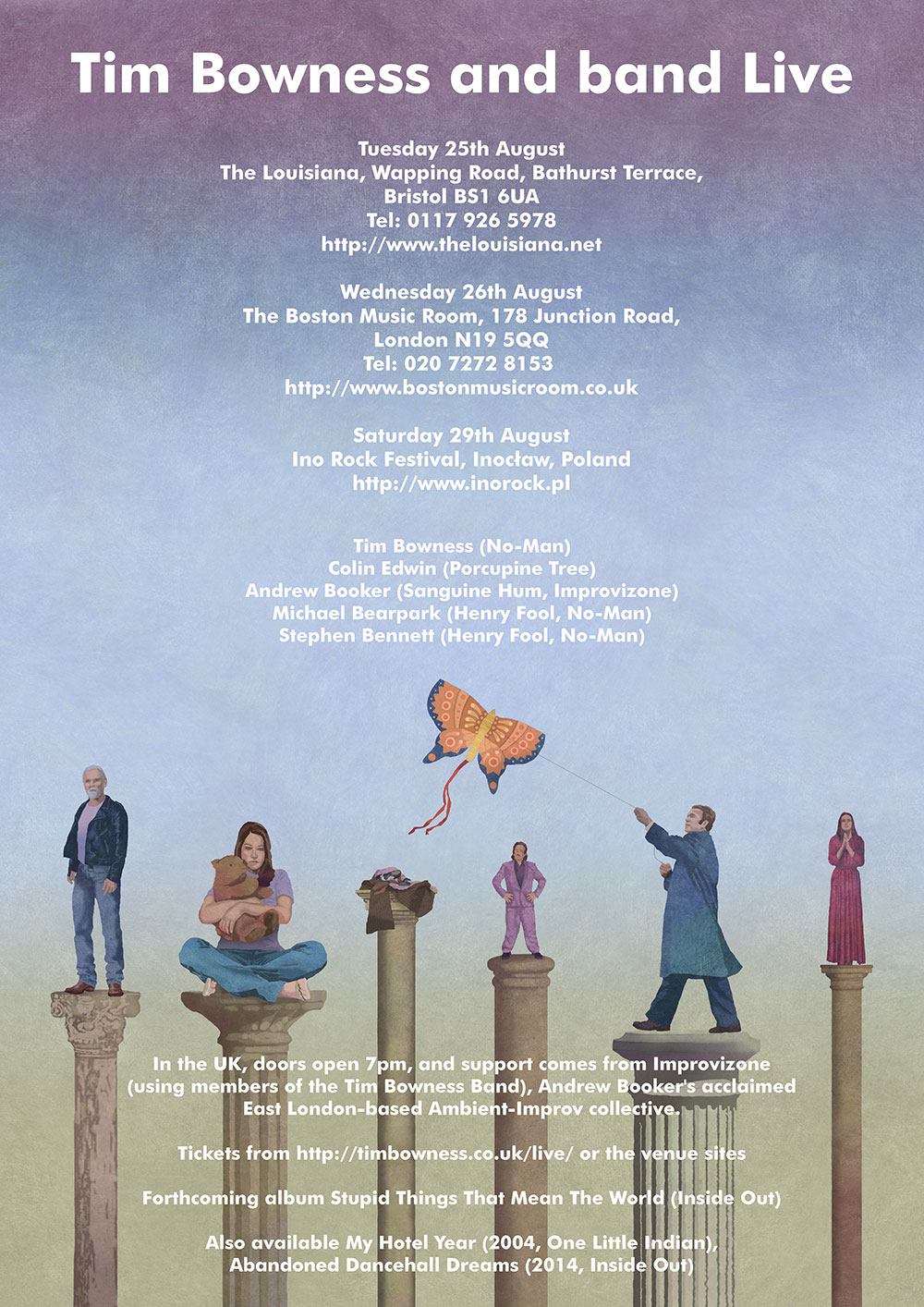 Looking further ahead, Tim Bowness is out on a very brief tour in August, playing a handful of dates in England and Poland to promote his imminent album ‘Stupid Things That Mean The World’ as mentioned last month. His band features his usual cohorts of Andrew Booker (drums – also of Sanguine Hum), Michael Bearpark (guitar – Darkroom, Henry Fool), Stephen Bennett (keyboards – Henry Fool) and the more recent recruit Colin Edwin (bass guitar – Porcupine Tree).
