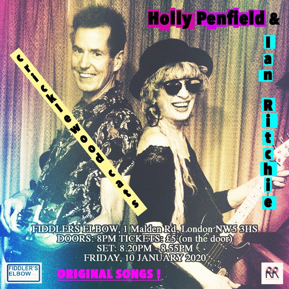Holly Penfield & Ian Ritchie, 10th January 2019If you can’t wait until March, Holly and her multi-instrumentalist husband Ian Ritchie (the latter an ex-Deaf School member recently fresh off playing sax on the Roger Waters tour) will be playing another London gig this coming Friday, up at the Fiddler’s Elbow. This one will be an “experimental thirty-minute duo gig of originals with vintage ‘80s drum machine… interesting, quirky,and challenging!”